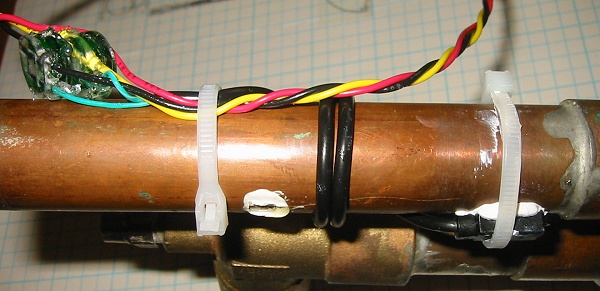One small tie-wrap (left) is used to hold the bus and the sensor cable