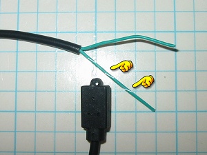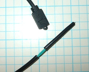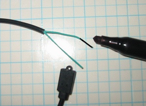 The first step is to expose some more of the green wire to make the connection possible. I measure back about 1 1/4" and snip the black outer layer. This enables me to slide it off to expose the green wires. Be careful not to snip too deep, otherwise you will damage the insulation on the inner wire. |